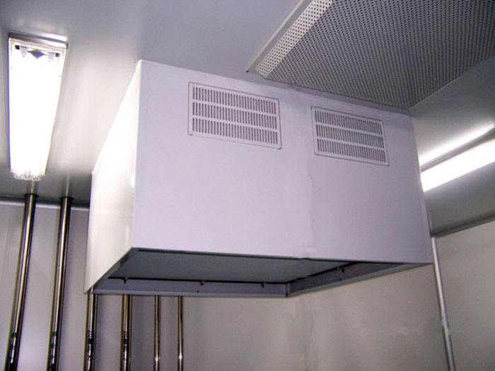 高效過(guò)濾器進(jìn)行二次過(guò)濾,以起到充分保護(hù)高效過(guò)濾器的作用。在離心風(fēng)機(jī)提供的壓力下,通過(guò)高效過(guò)濾器,使之達(dá)到潔凈要求。所有氣流均經(jīng)過(guò)