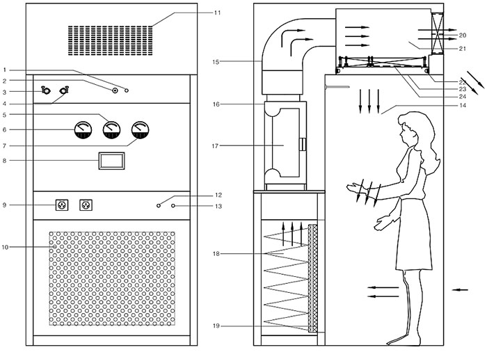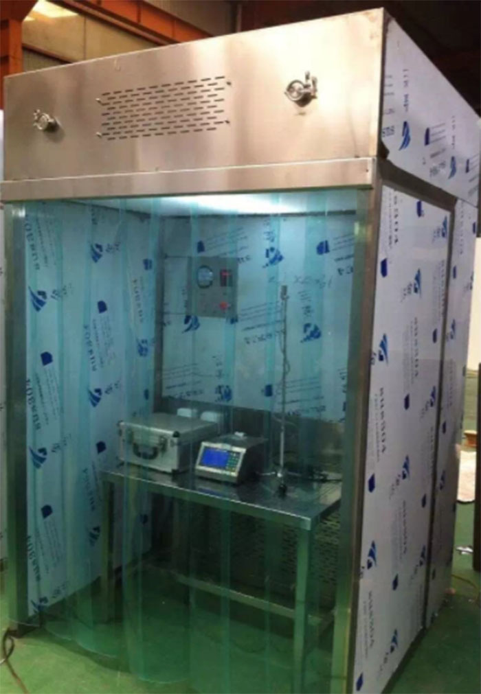 潔凈傳遞稱量室是為在凈化區(qū)域稱量原輔料、活性炭等帶粉塵的固體物所設(shè)計(jì)的凈化設(shè)備。稱量室工作區(qū)相對(duì)背景區(qū)為負(fù)壓,工作區(qū)內(nèi)的垂直單向氣流保證了稱量粉塵隨氣流下行,以不向背景區(qū)擴(kuò)散,從而可以防止交叉污染,保護(hù)潔凈環(huán)境及操作人員的安全。