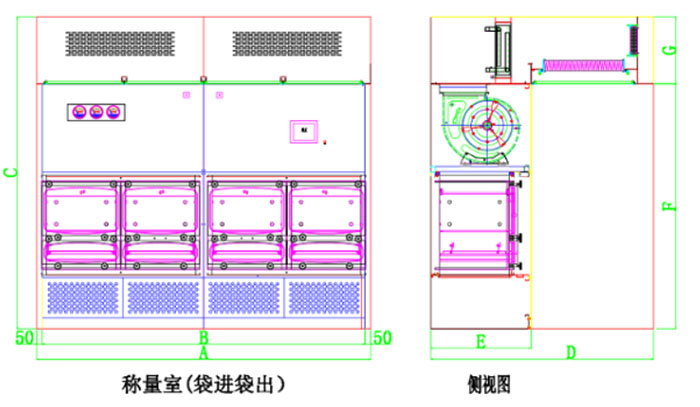 注明:潔凈傳遞稱量室規(guī)格尺寸可按客戶要求定做。