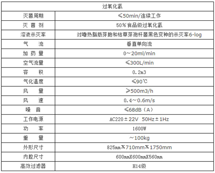 無(wú)菌傳遞艙技術(shù)指標(biāo):